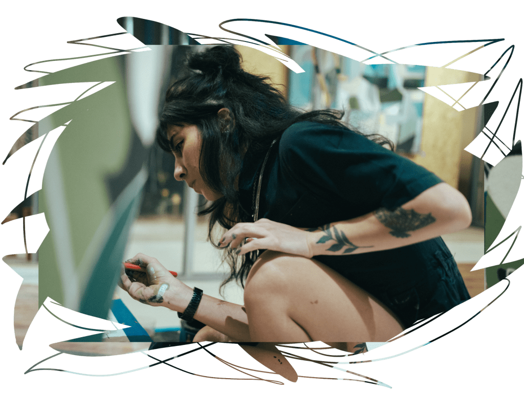 aqui, conto melhor sobre quem sou eu e sobre o meu ateliê, onde produzo minhas artes e passo a maior parte do meu dia.