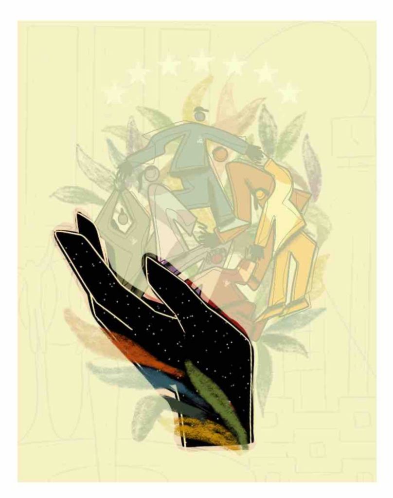 os personagens representam os alunos, ex alunos. professores e funcionários que se movem dentro desse mundo. forma-se um círculo que representa o Mundo. cada personagem tem uma cor e