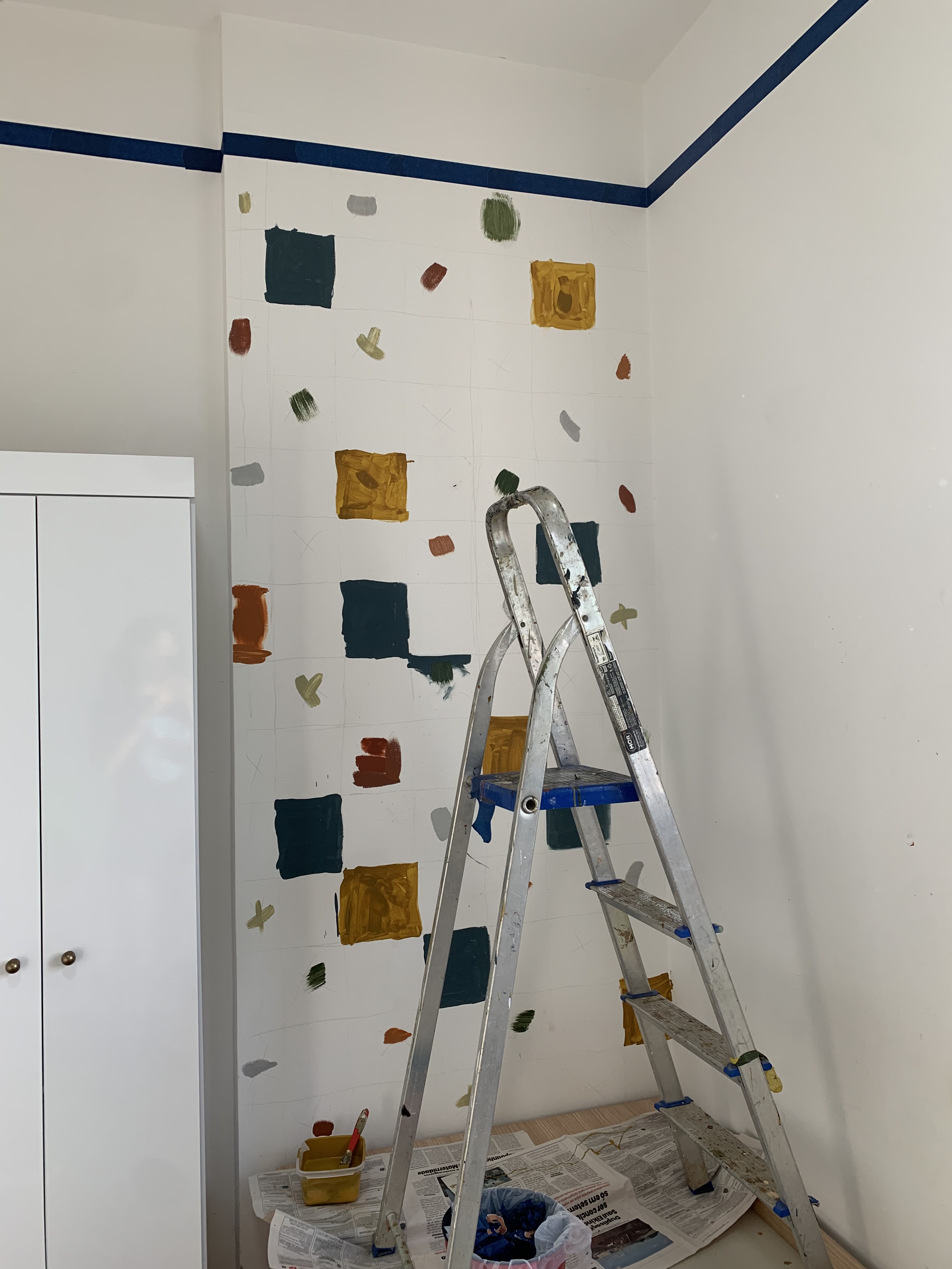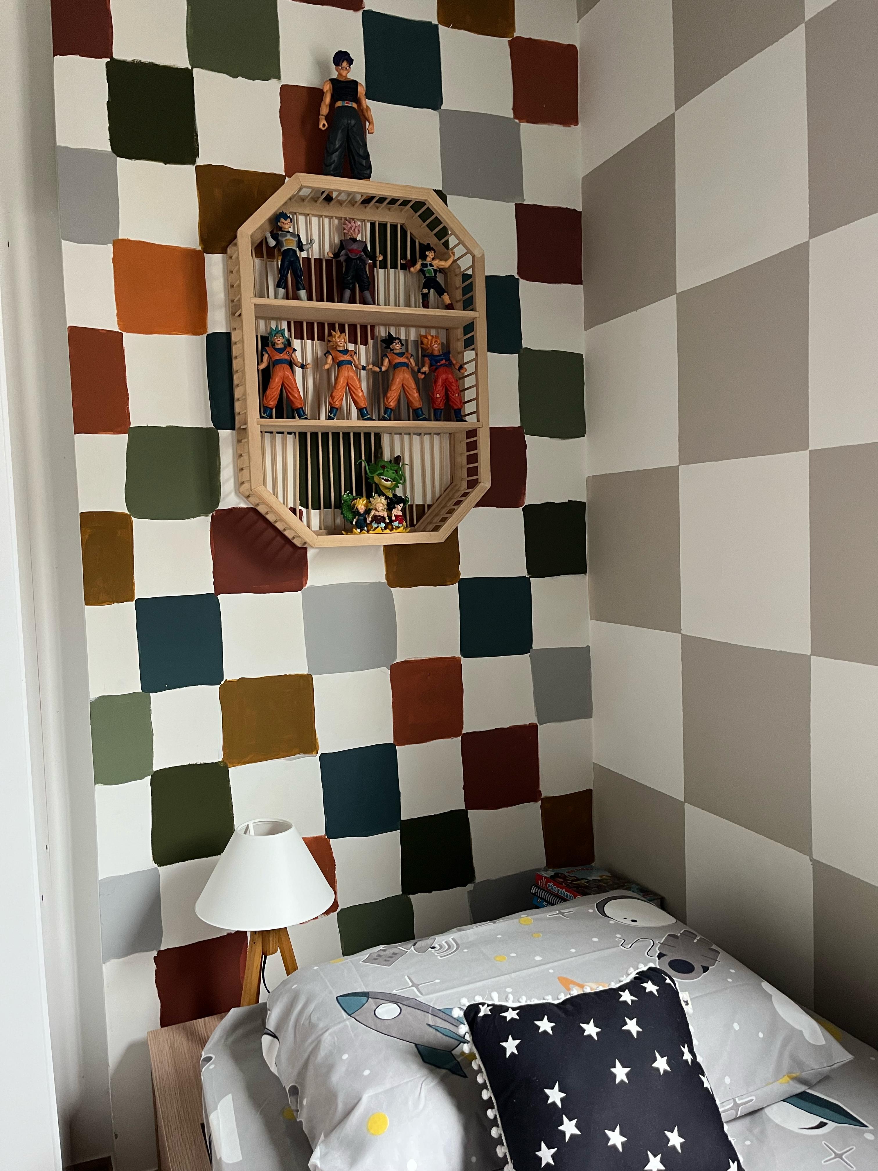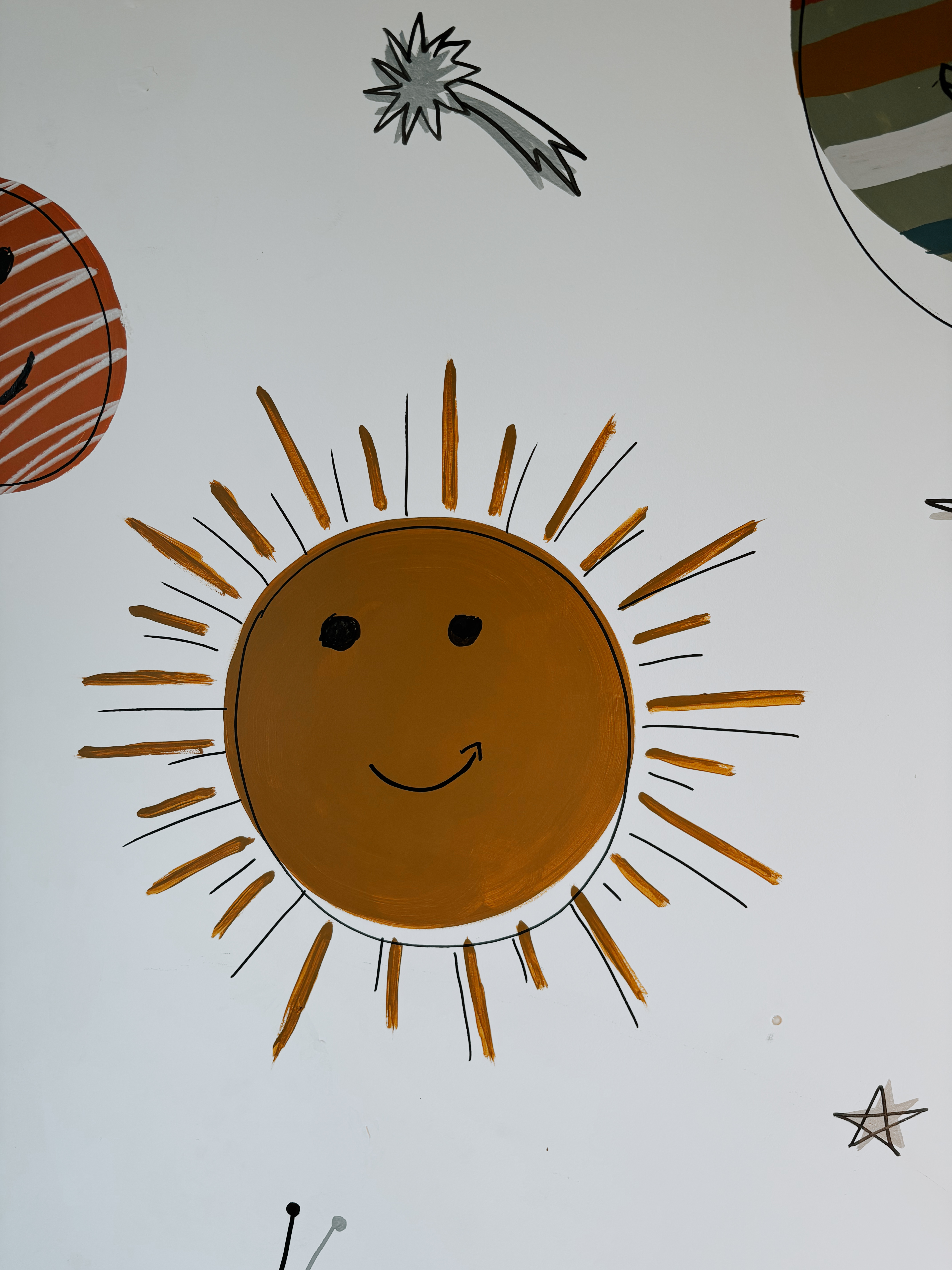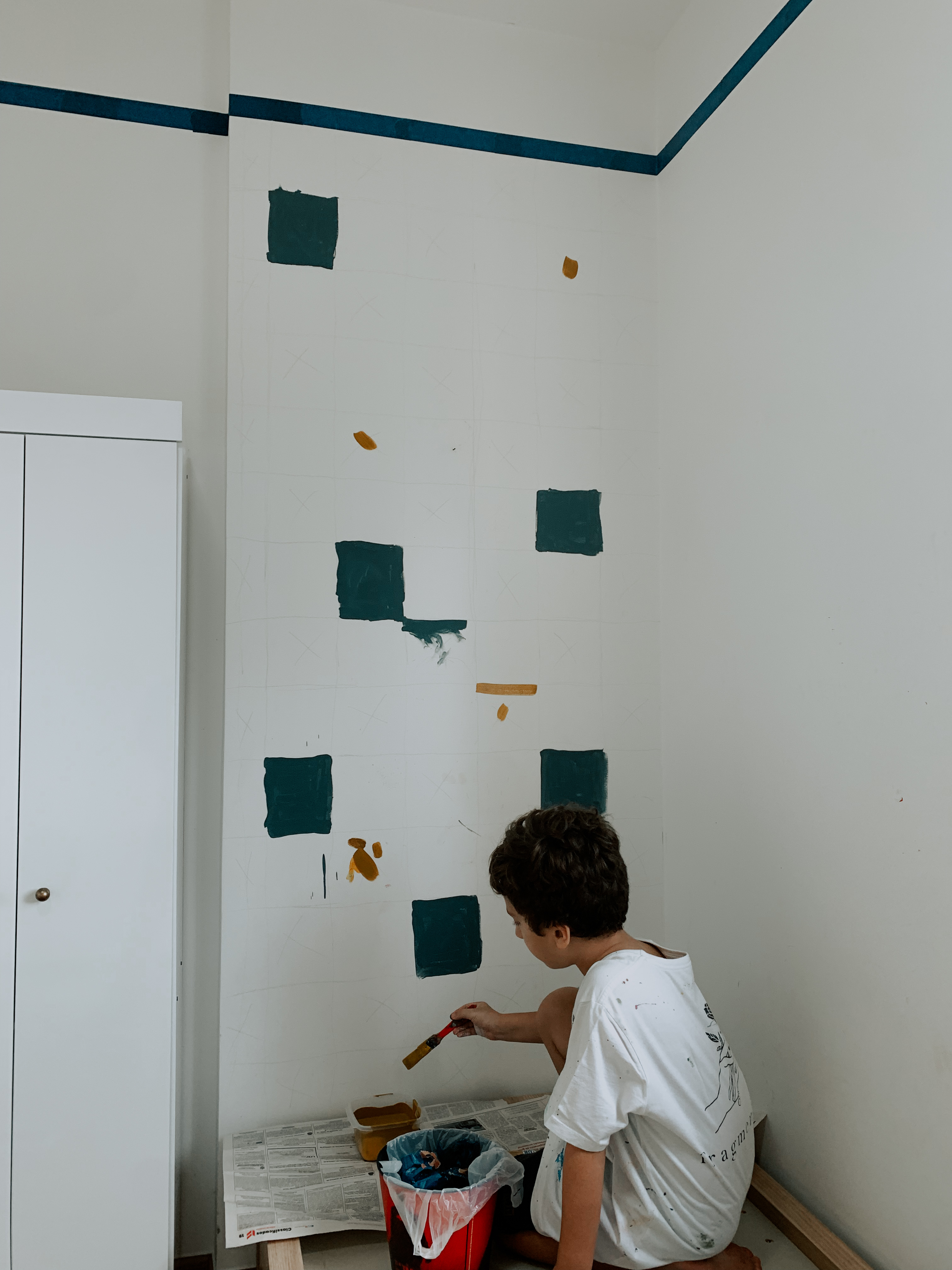 este quarto não pintei sozinha. bernardo esteve comigo em todas as etapas, desde escolher e decidir sobre a arte, até a assinatura. existem muitos significados na pintura desse quarto. fizemos ele focado no espectro autista dele. para saber mais da minha inspiração e resolução, você pode checar nos destaques do meu instagram.